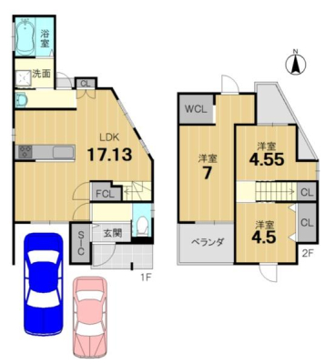 ■両面道路■LDK広々18.5帖■2面バルコニー ■駐車1台可■完成済みにつき即引き渡し可