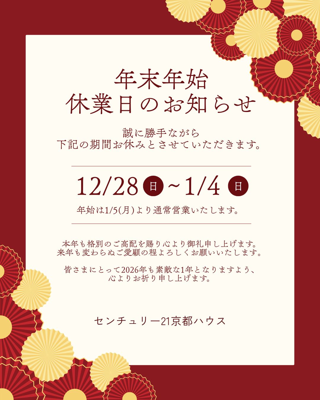2025-12-26年末年始休業日のお知らせ