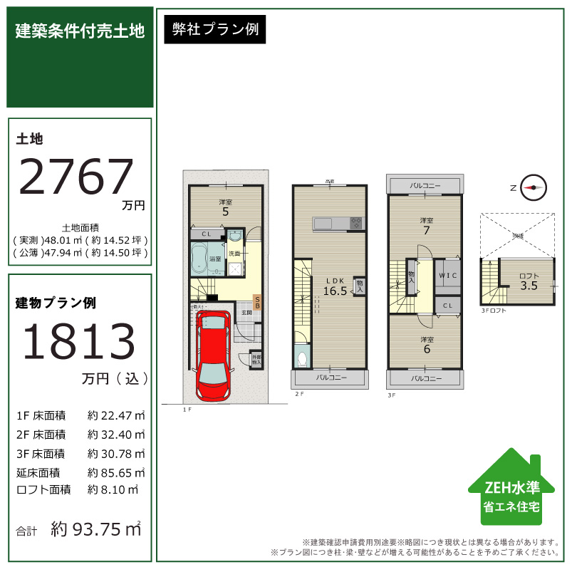 | 販売戸数 / 総戸数 | 1区画/1区画 | 土地面積 | 47.94㎡ |